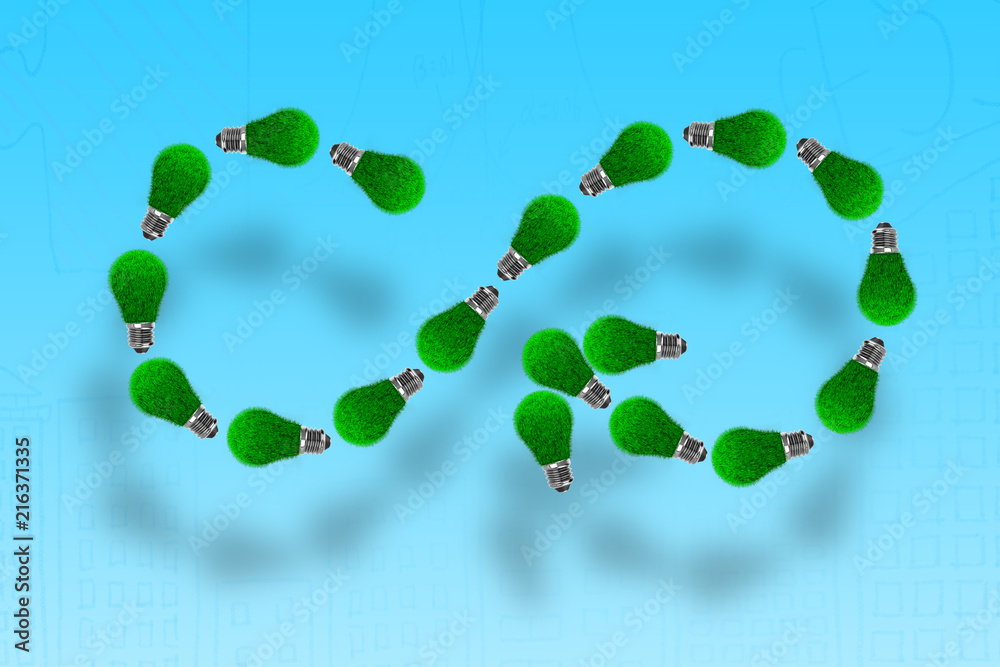 Light Bulbs With Green Grass In Form Of Arrow Infinity Recycling Symbol On Blue Background Concept Of Eco Green Energy And Circular Economy 3d Illustration Stock Illustration Adobe Stock